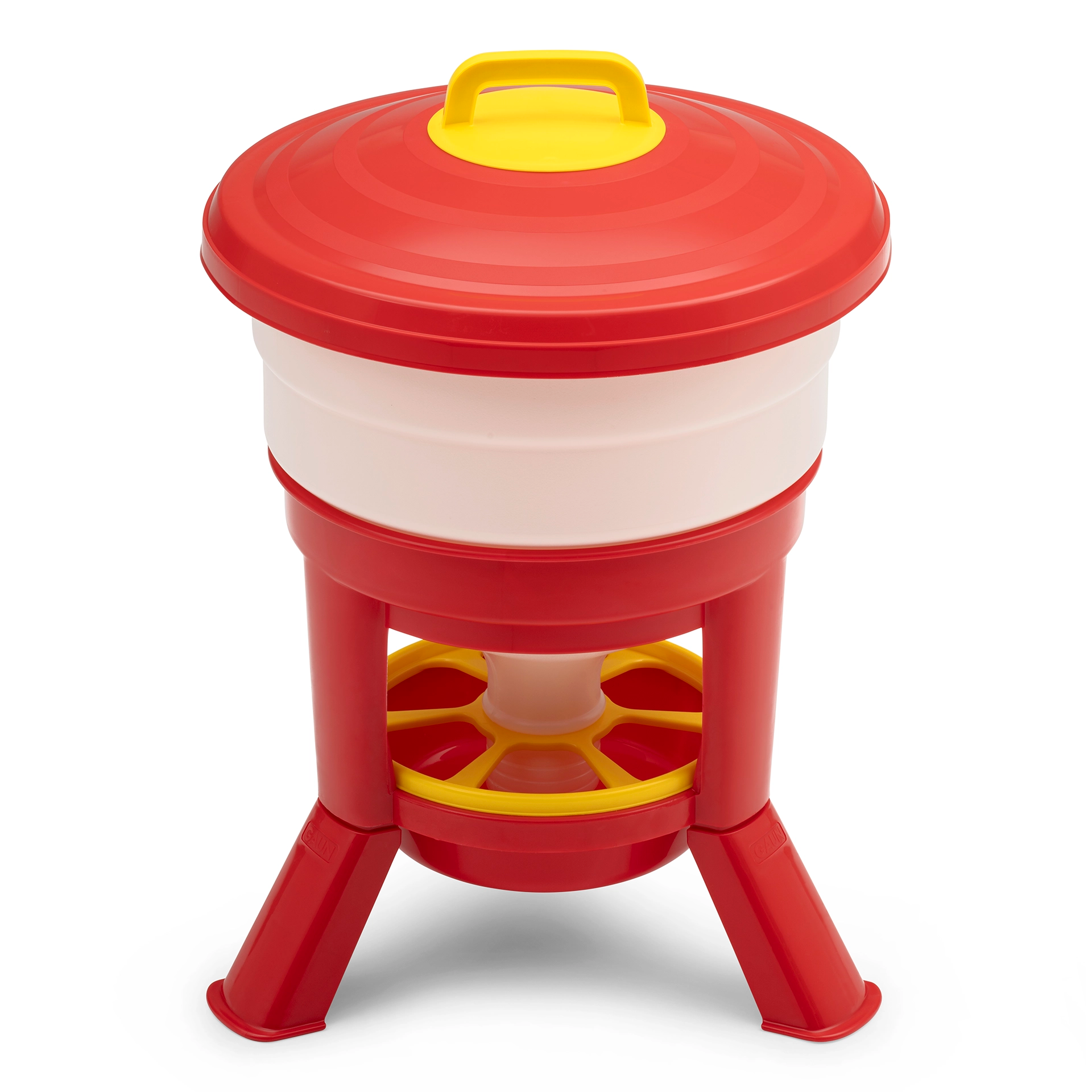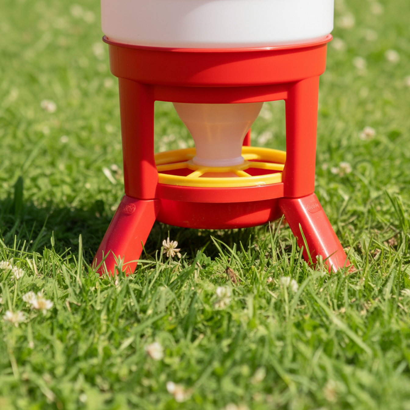 Der Futterspender ist speziell für Hühner, Fasane und Enten ausgelegt, kann aber auch für andere ähnlich große Vögel genutzt werden.