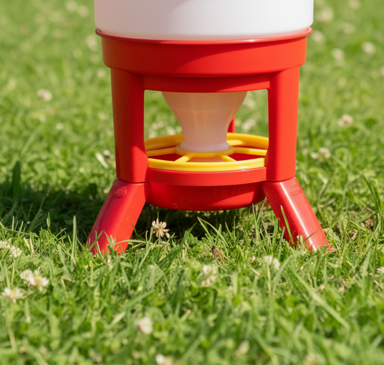 Der Futterspender ist speziell für Hühner, Fasane und Enten ausgelegt, kann aber auch für andere ähnlich große Vögel genutzt werden.