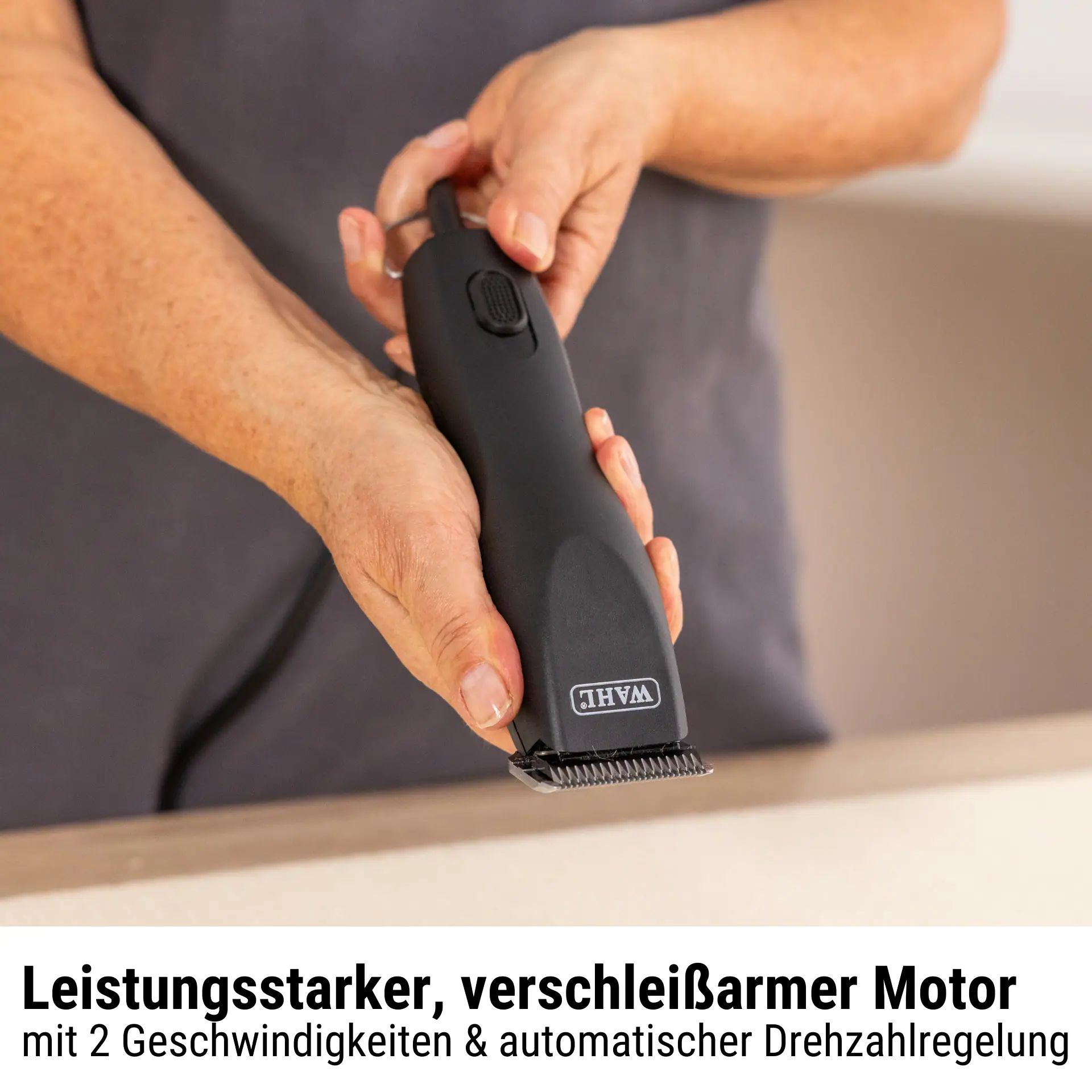 Die Wahl Max 50+ Hunde-Schermaschine bietet außergewöhnliche Leistung für müheloses Schneiden selbst bei dickem Fell. Mit zwei Geschwindigkeitsstufen und einem bürstenlosen Motor garantiert sie stressfreie Pflege.