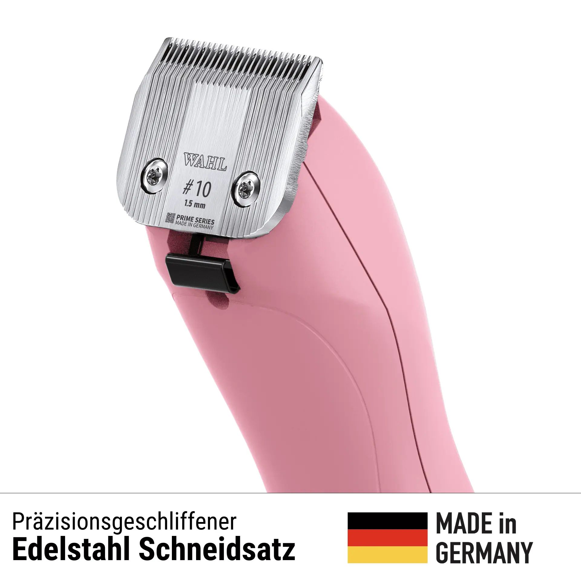 Die Wahl KM2+ Hunde-Schermaschine überzeugt mit ihrem ergonomischen Design, das eine bequeme Handhabung bietet und Ermüdung bei längeren Grooming-Sessions verringert. Ihre auffällige pinkfarbene Oberfläche macht sie nicht nur modern, sondern auch leicht erkennbar. Die Form liegt gut in der Hand und verbessert die Kontrolle, was zu einem präziseren Schnitt führt.