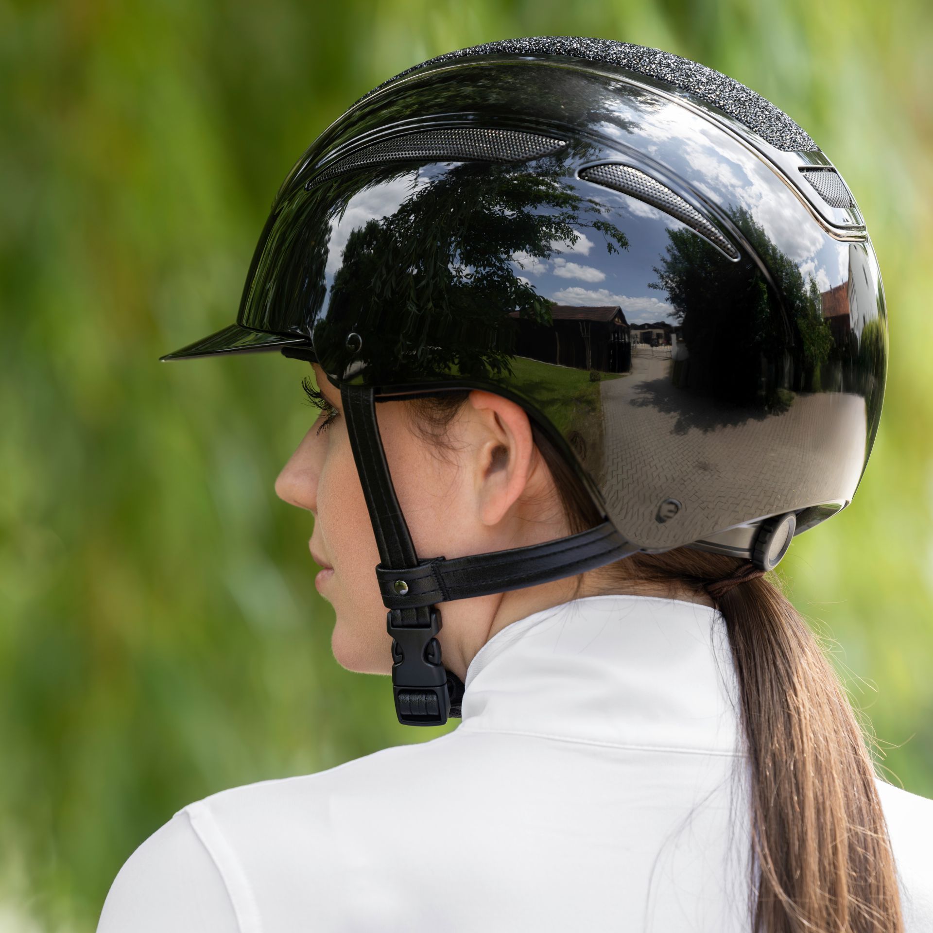 Der Reithelm Elite vereint elegantes Design mit hervorragender Funktionalität, damit du beim Reiten nicht nur sicher, sondern auch stilvoll unterwegs bist. Mit seiner herausragenden Passform sorgt er für ein angenehmes Tragegefühl, das selbst bei längeren Ausritten nicht nachlässt. Die weichen und hochwertigen Kunstleder-Befestigungsriemen tragen dazu bei, dass der Helm bequem sitzt und nicht verrutscht. Zudem ermöglicht das Disc-System eine einhändige, stufenlose Anpassung des Kopfbandes an deinen Kopfumfang - so sitzt der Helm immer perfekt. Besonders hervorzuheben ist das hervorragende Belüftungssystem, das für ein optimales Klima unter dem Helm sorgt.