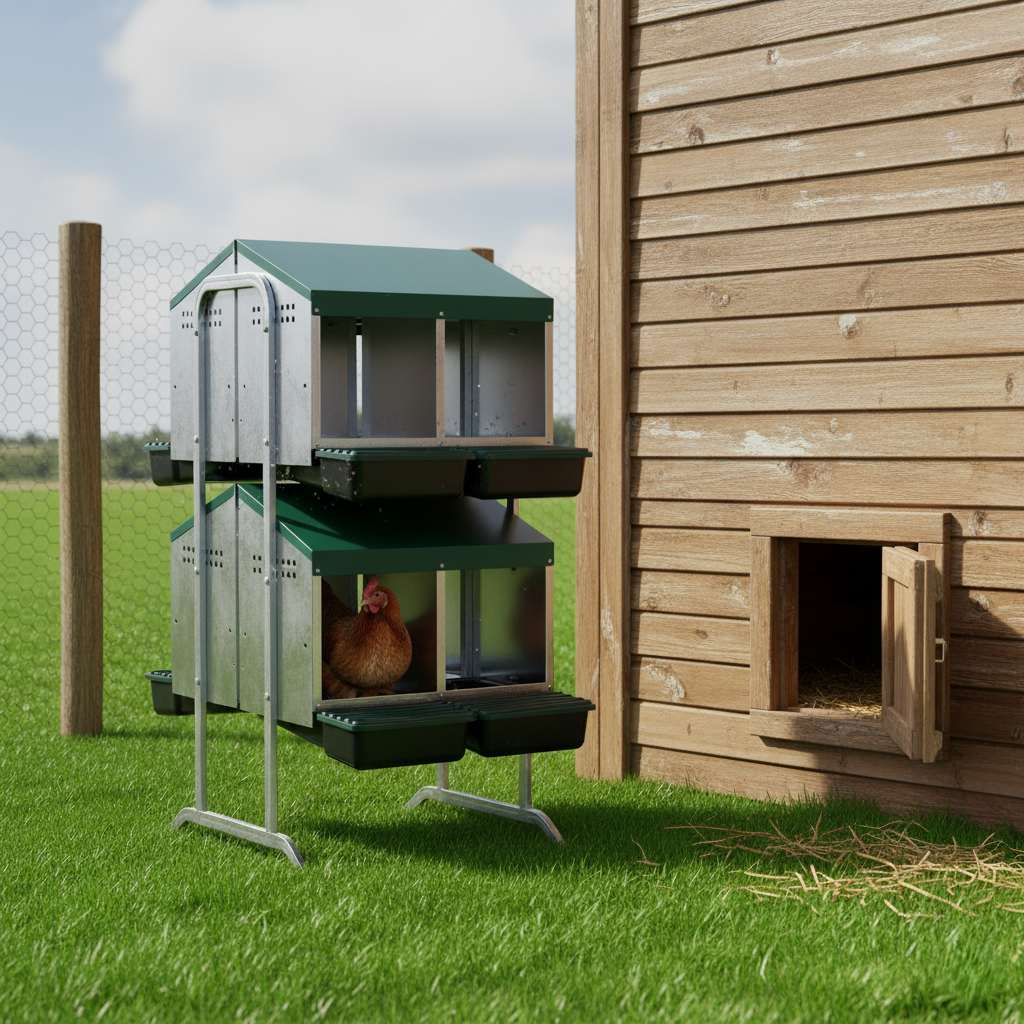 Die Verwendung von hochwertigem wetterbeständigem Metall sorgt dafür, dass das Etagen-Legenest nicht nur langlebig, sondern auch pflegeleicht ist. Damit schaffst du nicht nur einen praktischen, sondern auch einen sicheren Rückzugsort für deine Hühner. Ideal für alle, die Wert auf artgerechte Haltung legen und ihren Tieren ein angenehmes Umfeld bieten möchten.