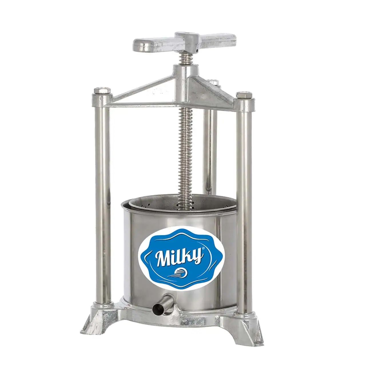 Mit der Käsepresse wird das Käsemachen zum echten Vergnügen! Egal, ob du zu Hause experimentierst oder Käse für den Direktvertrieb herstellst, diese kleine, handliche Presse macht es dir leicht. Einfach die gefüllte Käseform in den Presskorb drehen und die Kurbel betätigen – schon wird dein Käse perfekt gepresst. Sie ist nicht nur praktisch, sondern auch genial in der Anwendung. Der Presskorb und die Presse sind aus hochwertigem Edelstahl, während der Außenkorb und die Halterung aus stabilem Aluminium gefertigt sind. So garantierst du nicht nur eine einfache Handhabung, sondern auch Langlebigkeit und Qualität.