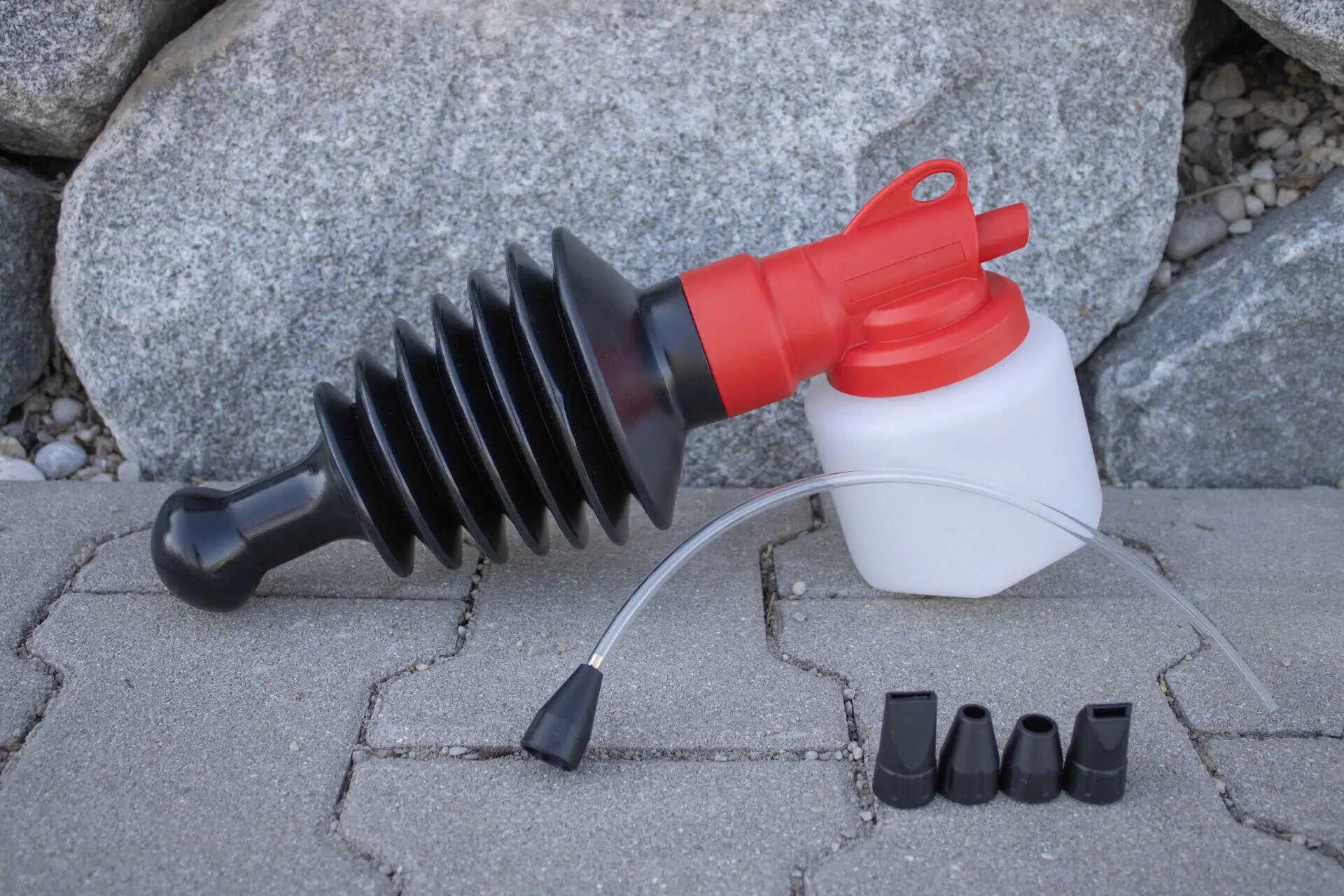 - fünf wechselbare Rund-, Winkel- und Flachstrahldüsen für universelle Anwendungen inkl. Verlängerungsrohr