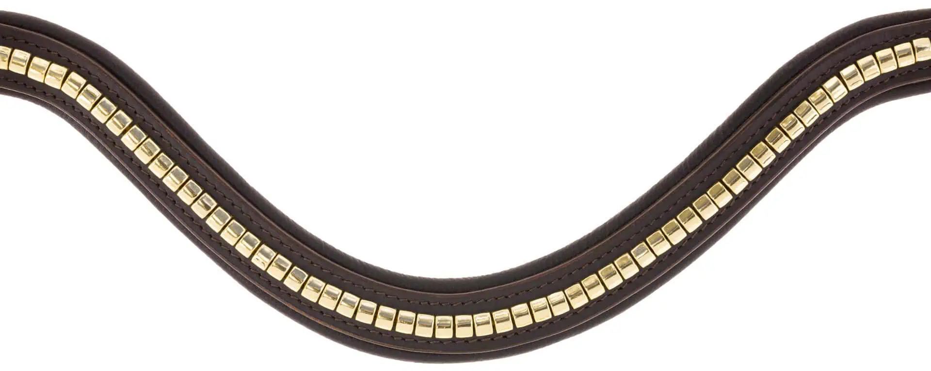Der geschwungene Stirnriemen mit Clinchern sorgt für einen sicheren und eleganten Sitz. Die hochwertigen, rostfreien Beschläge garantieren Langlebigkeit und Widerstandsfähigkeit. Der Zaum ist aus feinstem Leder gefertigt und überzeugt durch seine hochwertige Verarbeitung.