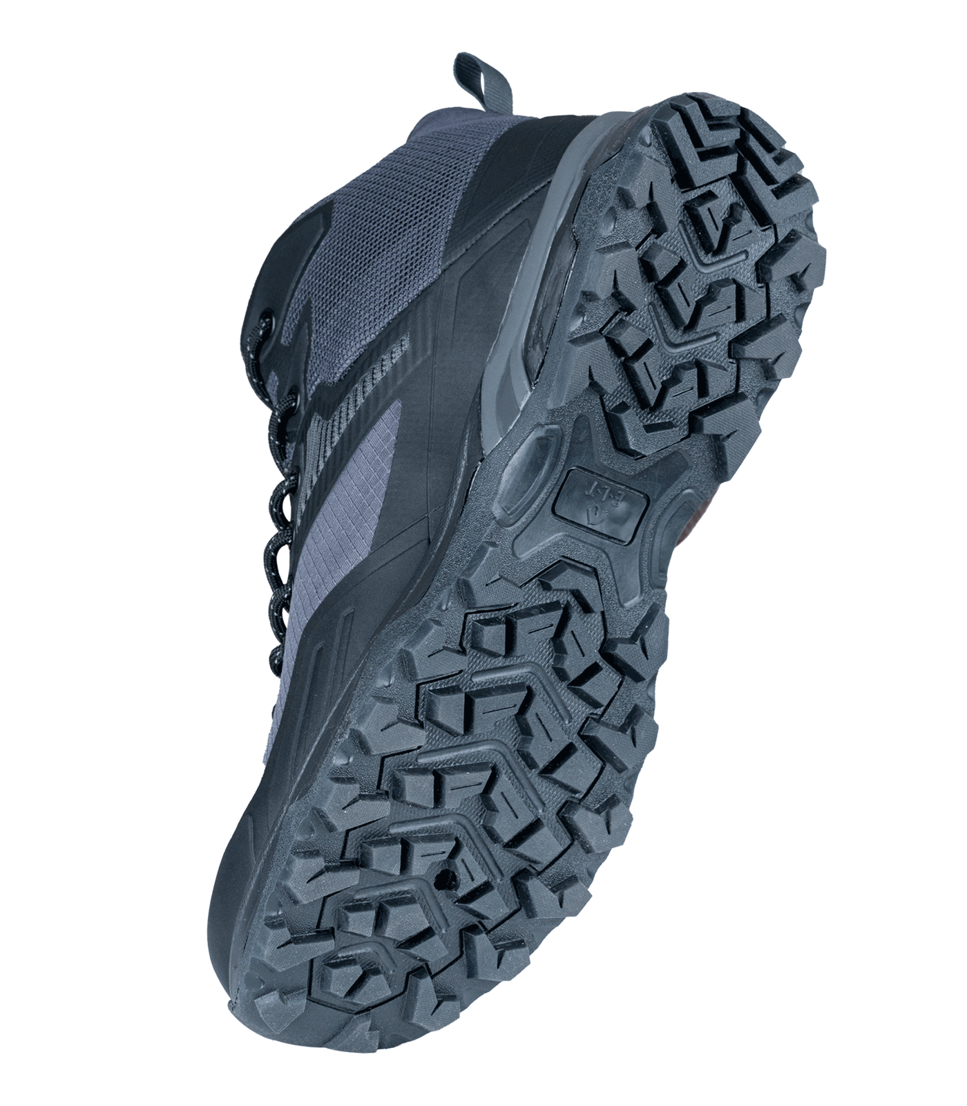 - Widerstandsfähige Bauweise: Der Schuh punktet mit einem wetterbeständigen Obermaterial, einem umfassenden Steinschlagschutz und einer robusten Zehenkappe aus TPU. Optimaler Schutz vor Stößen und Abnutzung ist garantiert.