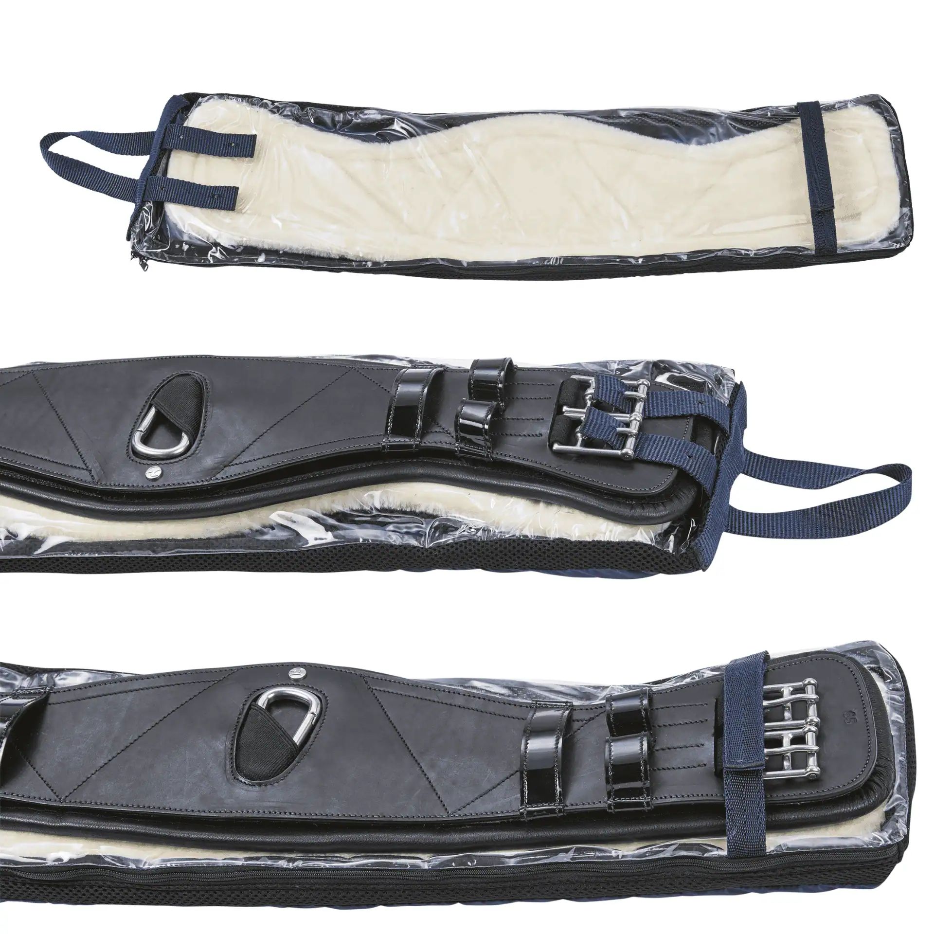 Gefertigt ist der Gurt aus hochwertigem, überwiegend rein pflanzlich gegerbtem amerikanischem Leder, das nicht nur langlebig und ressourcenschonend ist, sondern auch mit einer soften Haptik überzeugt. Die Expert-Schnallen aus Edelstahl sorgen für schonendes, flaches Gurten, während der mittige Karabinerhaken das Einschnallen von Hilfszügeln super praktisch macht. Dezente Lackleder-Details bringen einen eleganten Touch, die breite Auflagefläche (ca. 10–16,5 cm) verteilt den Druck optimal und die Verjüngung im Ellenbogenbereich beugt Scheuerstellen vor. Besonders praktisch: Im Lieferumfang ist eine gut belüftete Aufbewahrungstasche enthalten, in der der Gurt und die Paddings ordentlich zusammenbleiben. Die Beschläge sind aus Edelstahl gefertigt, das 3D AIR® EFFECT Padding besteht aus Synthetik-Mesh-Gewebe und das Kunstfellpadding ist für empfindliche Pferdehaut gemacht – alles einfach zu reinigen und langlebig.