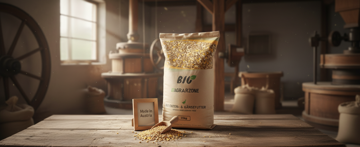 Unser Bio-Entenfutter ist eine sorgfältig abgestimmte Nährstoffquelle. Es stärkt das Immunsystem, fördert kräftige Knochen und ein glänzendes Gefieder – für ein aktives und rundum gesundes Entenleben.