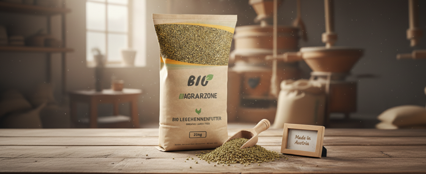 Unser gentechnikfreies Futter stammt ausschließlich aus biologischem Anbau und ist AMA-Gütesiegel tauglich. Das steht für höchste Qualität und Herkunftstransparenz.