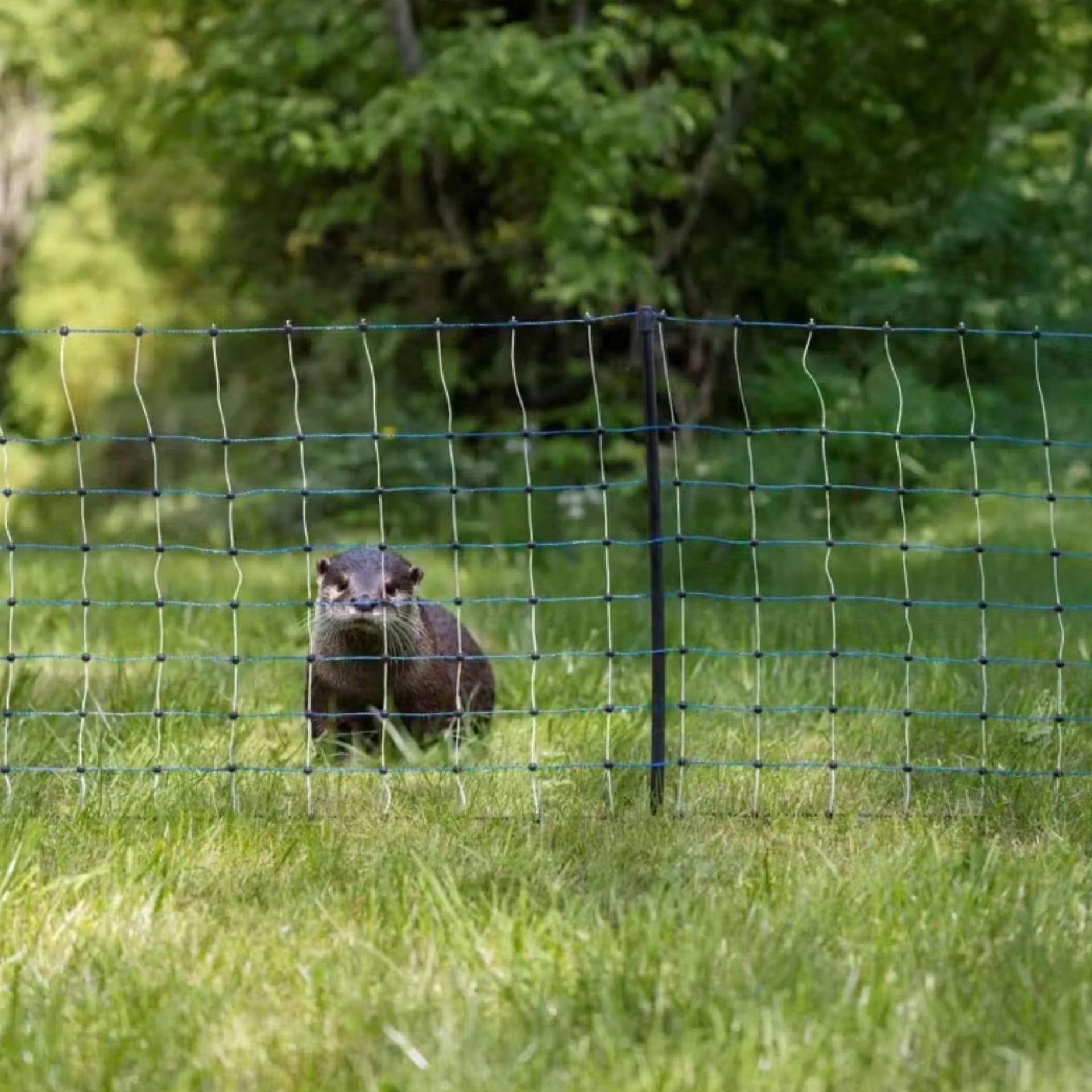 Das Fischotter Zaun Netz aus langlebigem PVC ist 50 Meter lang und 50 Zentimeter hoch und lässt sich mit wenigen Handgriffen rund um deinen Teich anbringen. Durch die deutlich reduzierte Maschengröße können auch Jungiere nicht hundurchschlüpfen! Die weiß-blaue Farbgebung sorgt dafür, dass Wildtiere das Netz frühzeitig wahrnehmen und sich fernhalten. Die elektrifizierbare Konstruktion mit Doppelspitz-Pfählen macht Schluss mit Untergraben oder Überklettern – für Fischotter ist hier definitiv Schluss. Besonders praktisch: Im Vergleich zu herkömmlichen Einzelteilen ist der Aufbau ruckzuck erledigt, ganz ohne Stress.
