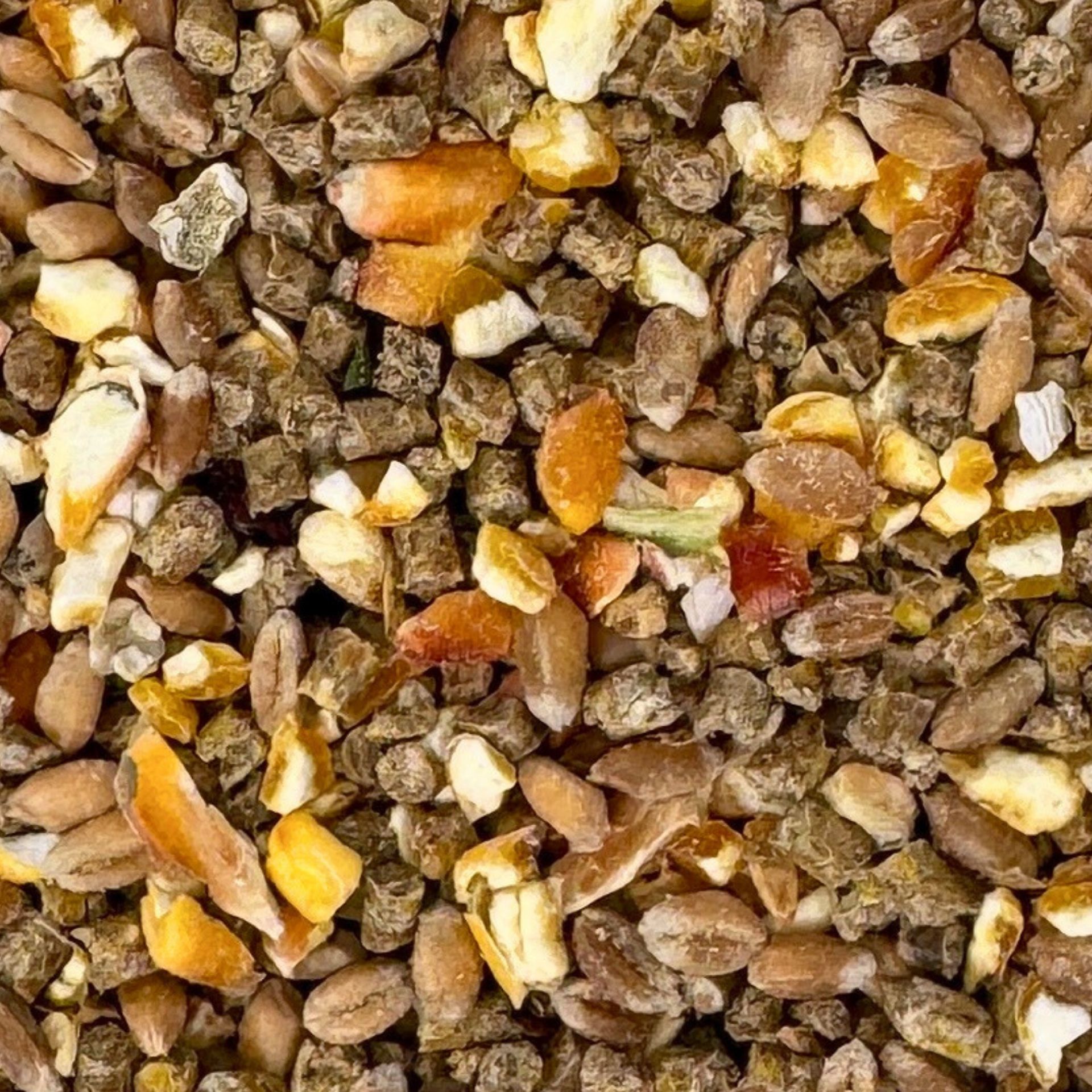 Stell dir vor: Deine Hühner picken in einem bunten, gesunden Garten – genau das Gefühl vermittelt unsere abwechslungsreiche Mischung mit wertvollen Inhaltsstoffen.