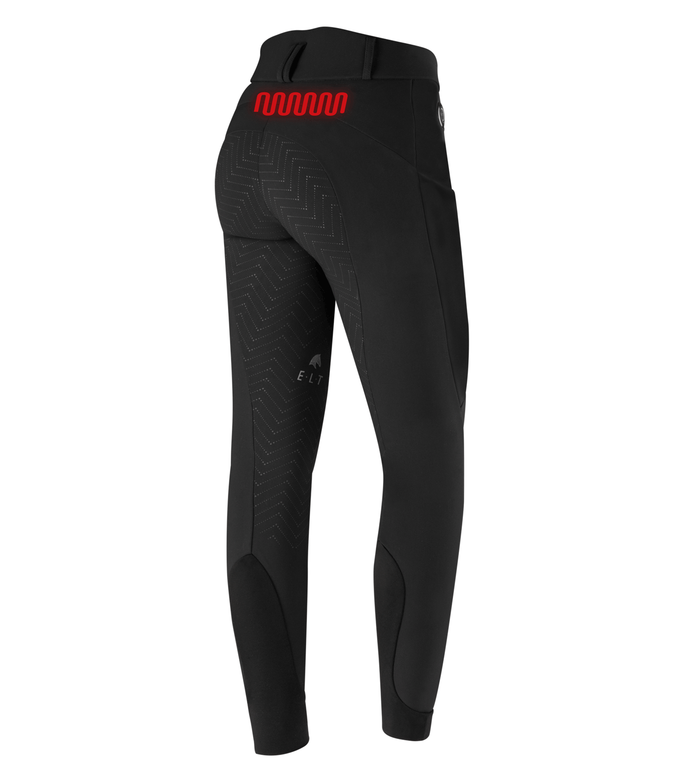 Der Silikon-Vollbesatz sorgt für einen optimalen Halt im Sattel, während der elastische Beinabschluss für einen bequemen Sitz in deinen Stiefeln sorgt. Außerdem hat die Reithose praktische Taschen, in denen du Kleinigkeiten verstauen kannst. In der rechten Tasche findest du den Anschluss für deine Powerbank, die dir die nötige Energie für wohlig warme Stunden liefert. Der dezente E·L·T Comfort Heat Schriftzug auf der linken Tasche rundet das moderne Design ab.