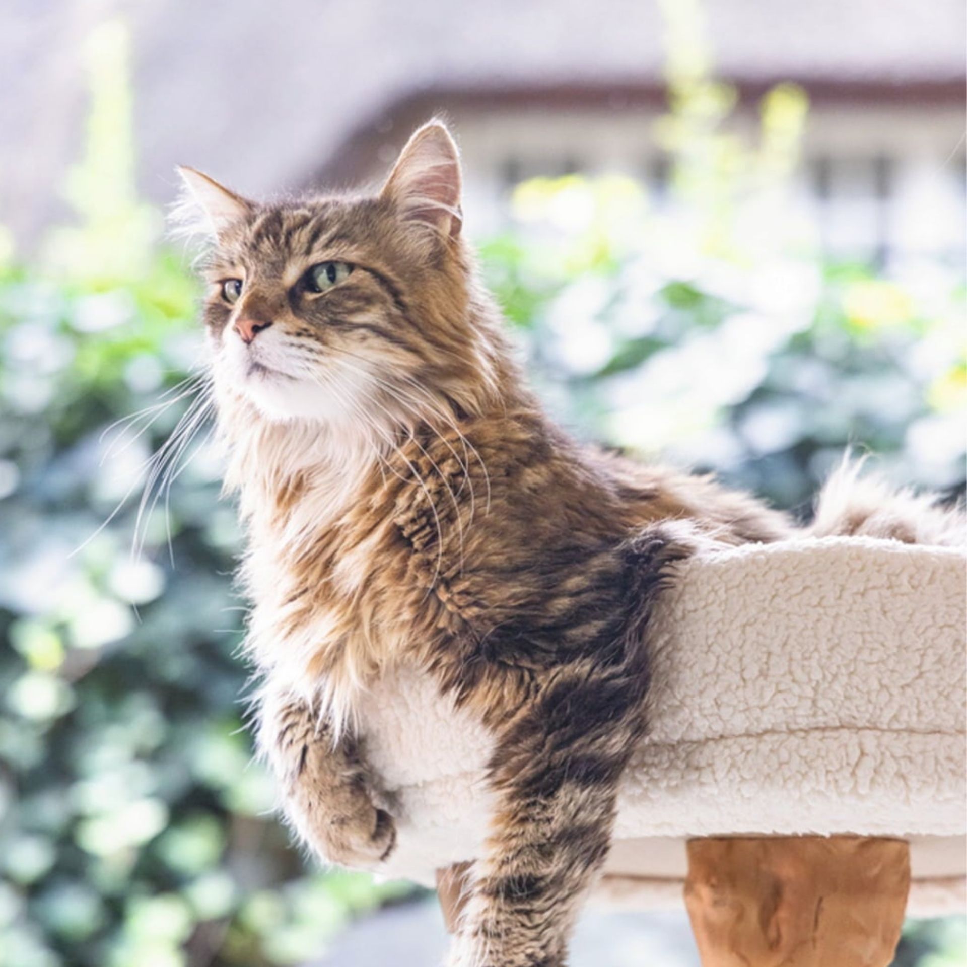 Dank der waschbaren Bezüge, der robusten Holzkonstruktion und den praktischen Maßen von 50 x 50 x 110 cm ist er perfekt für schicke Wohnungen mit Katzen bis zu 10 kg.