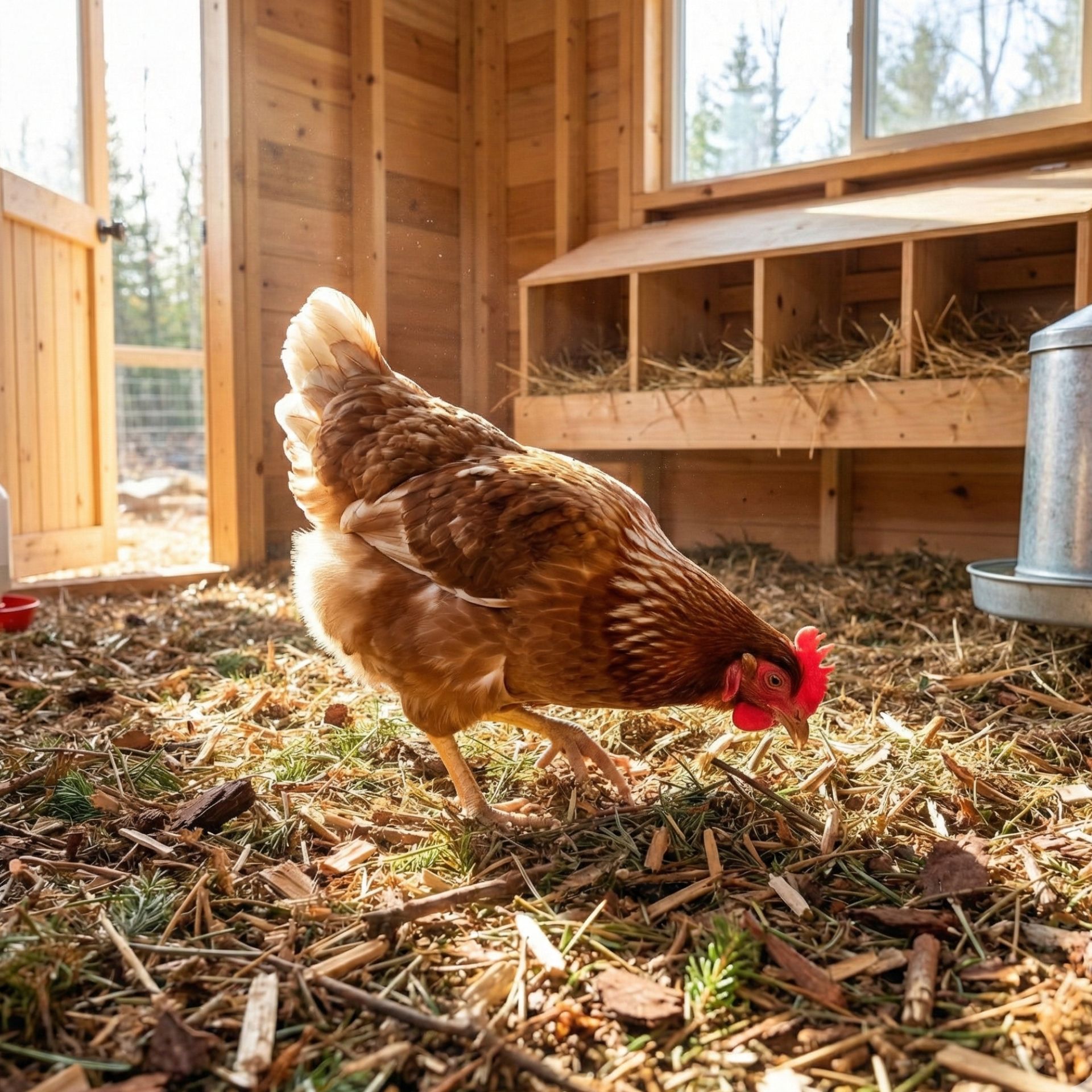 - Empfohlene Einstreuhöhe: mindestens 10 cm