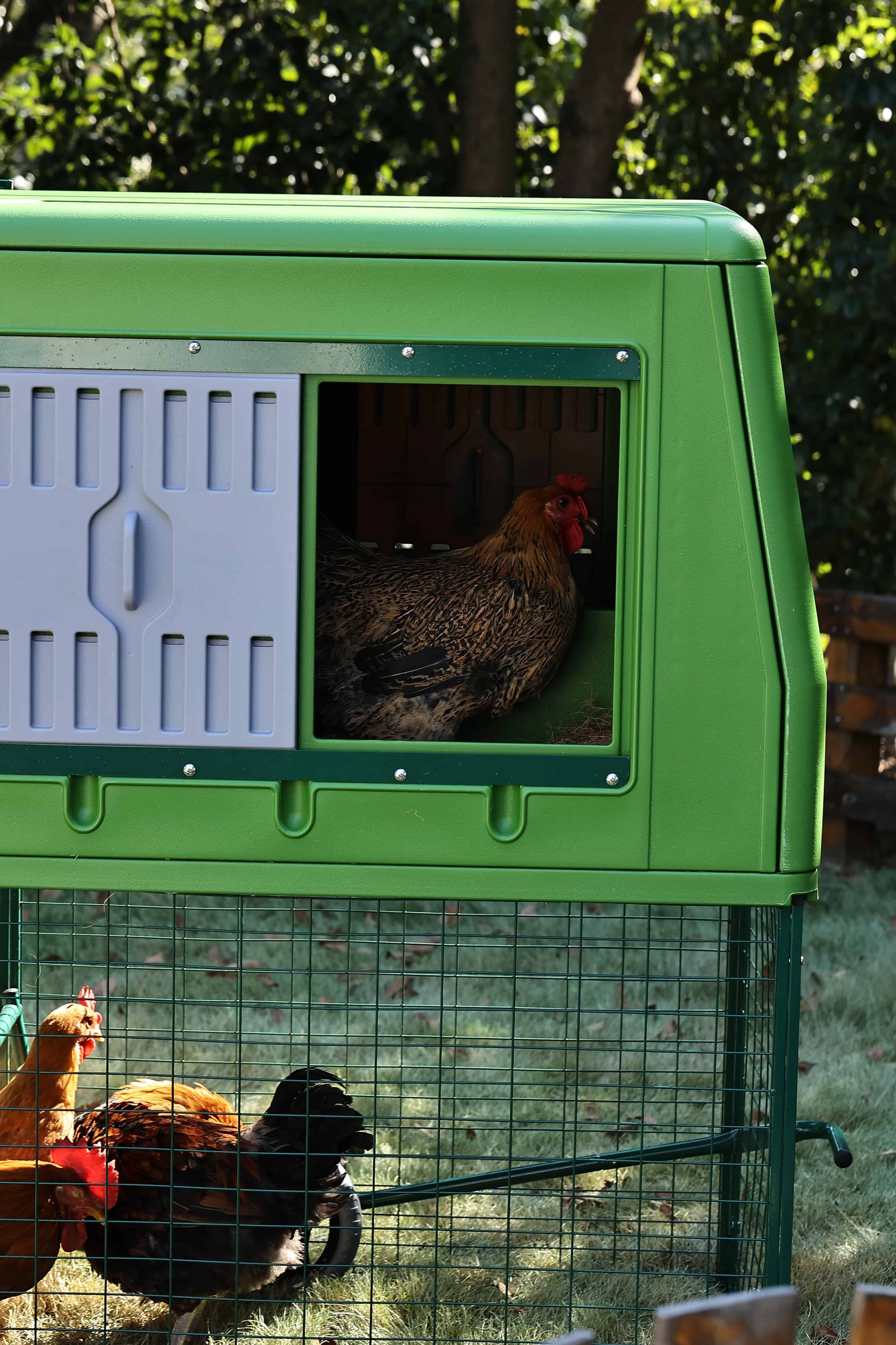 Das Chalet ist ein echtes Raumwunder. Je nach Hühnerrasse und Auslaufgestaltung finden hier 4 bis 6 Hühner ein komfortables Zuhause mit genug Platz für Schlafstangen und Nester.