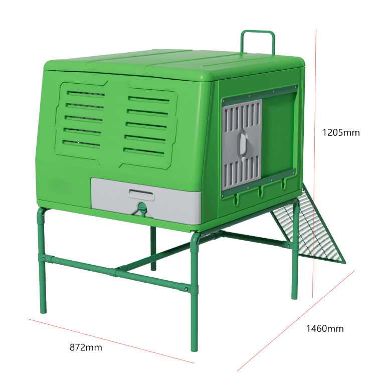 - Komfortabel: Leichte Eierentnahme und Fütterung durch gut erreichbare Zugänge.