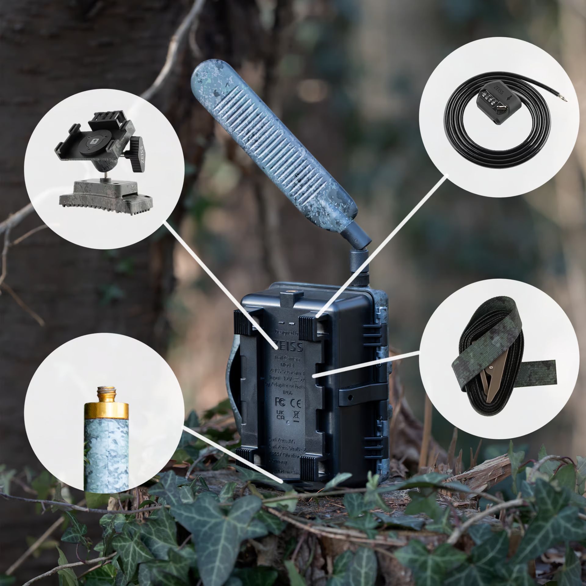 Keine Konfiguration, kein Stress: Die Secacam 1 kommt als echtes "Plug & Play"-Paket zu dir. Batterien, eine Speicherkarte und die essenzielle Multi-Roaming SIM-Karte sind bereits vorinstalliert. Du musst die Kamera nur einschalten, den Code mit der ZEISS Secacam App scannen und aufhängen. Egal ob A1, Magenta oder Drei – die Kamera wählt sich automatisch europaweit in das stärkste verfügbare Netz ein, damit dir keine Bewegung in deinem Revier entgeht.