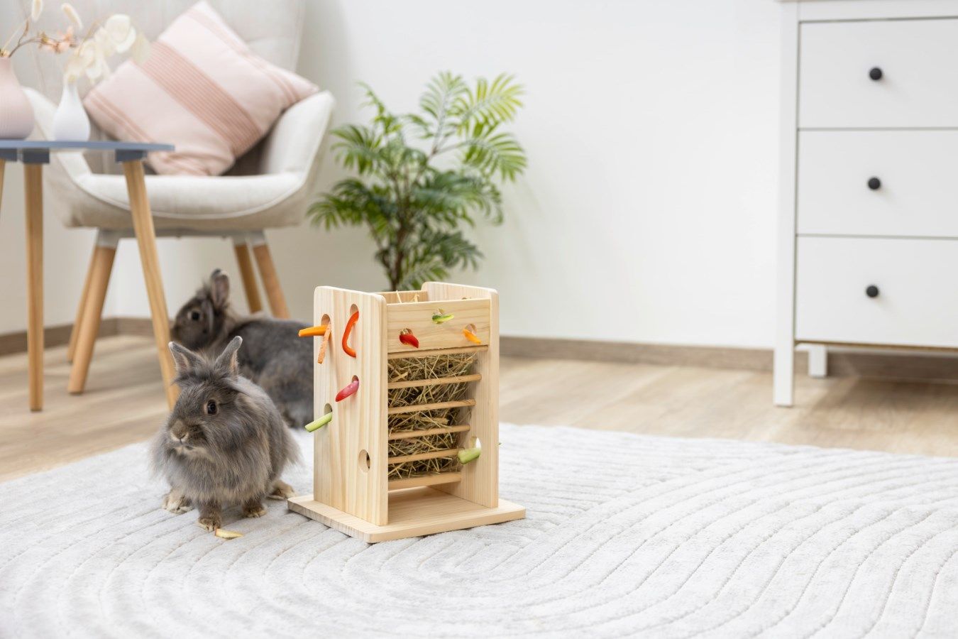 Hölzerner Futterturm für Kaninchen & Nager – Abwechslungsreiche Heuraufe für ein naturnahes Fresserlebnis