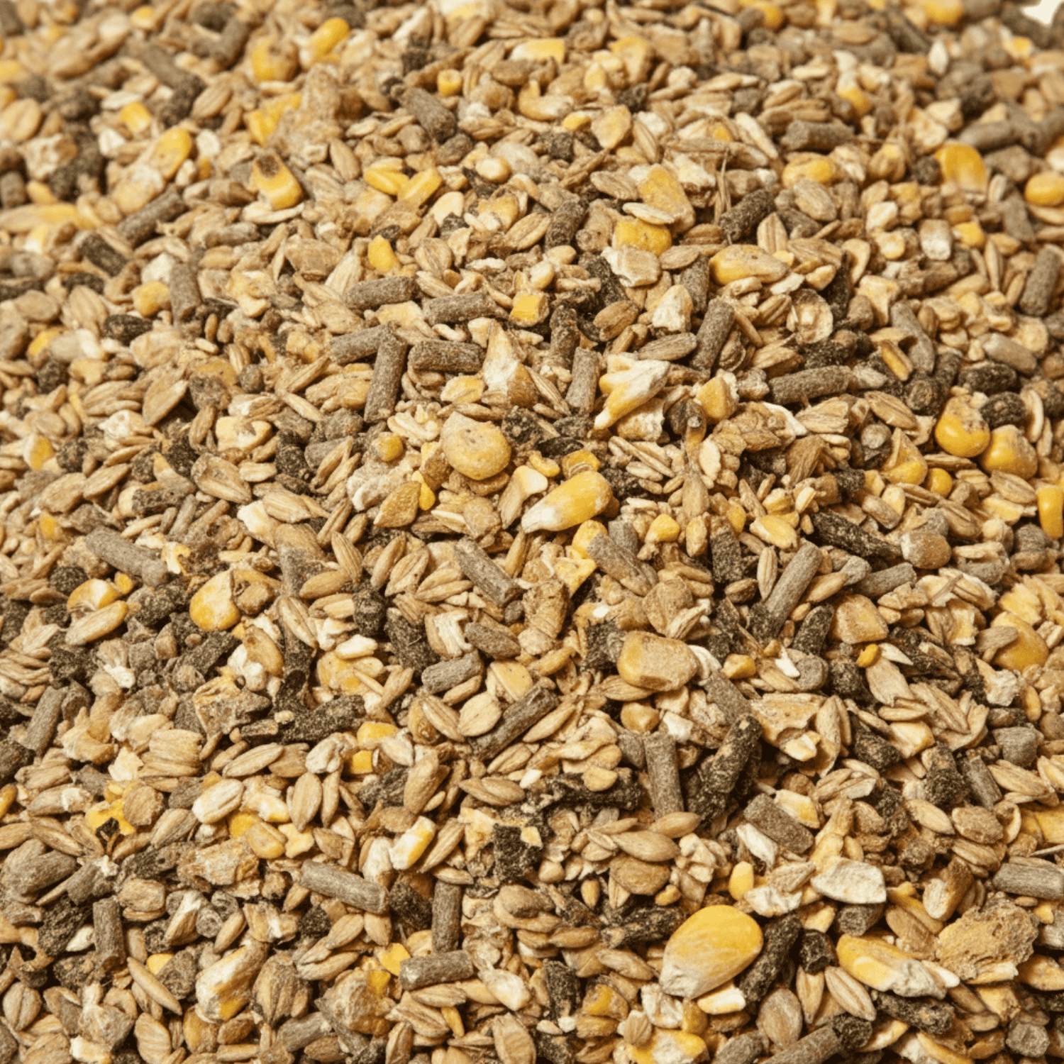 - Maisflocken*, Gerstenflocken*, Luzerne/Grünmehl*, Mais*, Weizenkleie*, Gerste*, Weizen*, Calciumcarbonat, Bierhefe, Triticale*, Monocalciumphosphat, Magnesiumoxid, Natriumchlorid, Natriumbicarbonat, Rapsöl raffiniert*, Sojaöl roh*, Rübenmelasse*