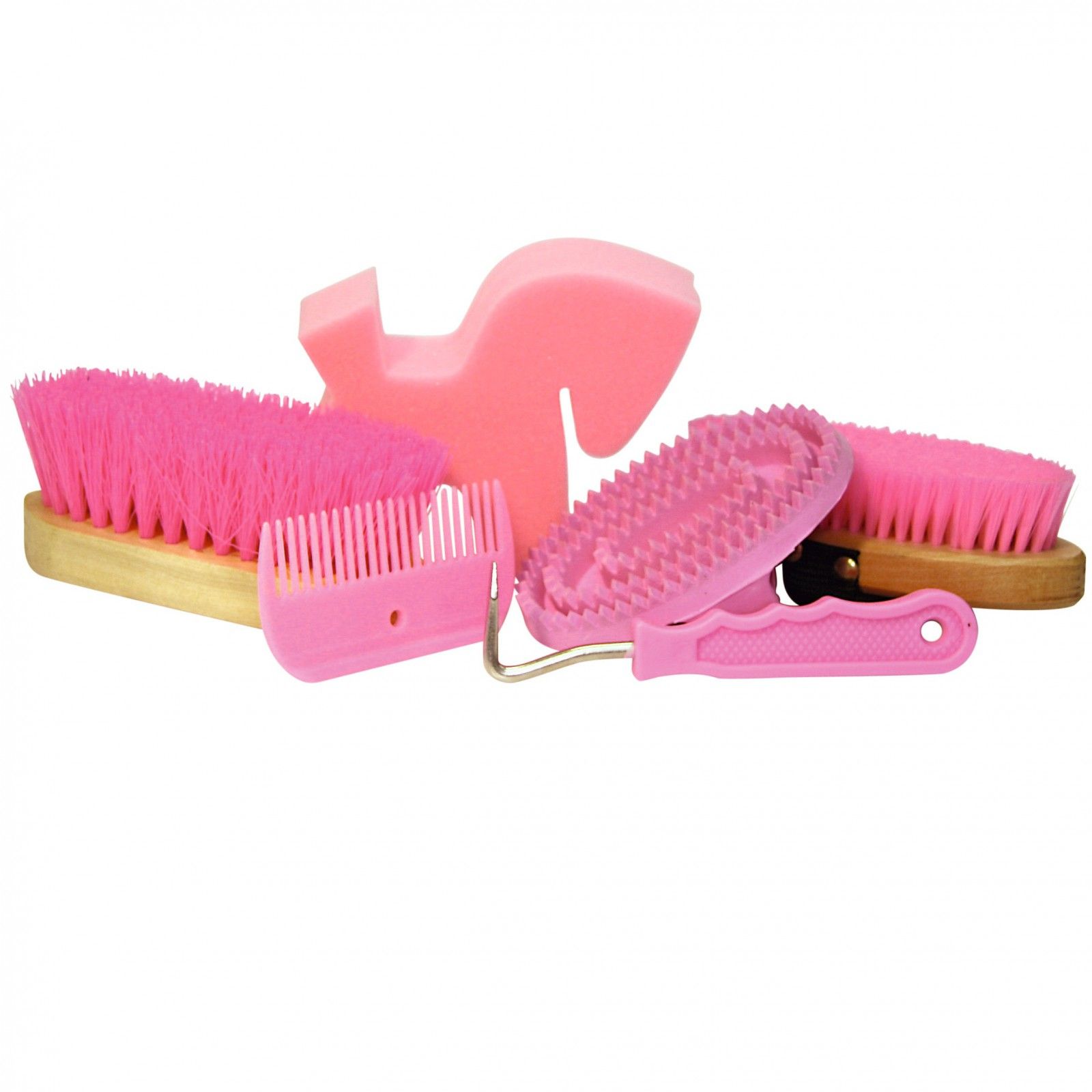 Es ist alles übersichtlich in einem Klarsichtrucksack verpackt und befüllt mit allem was man zur Pflege des Lieblingspferdes benötigt.