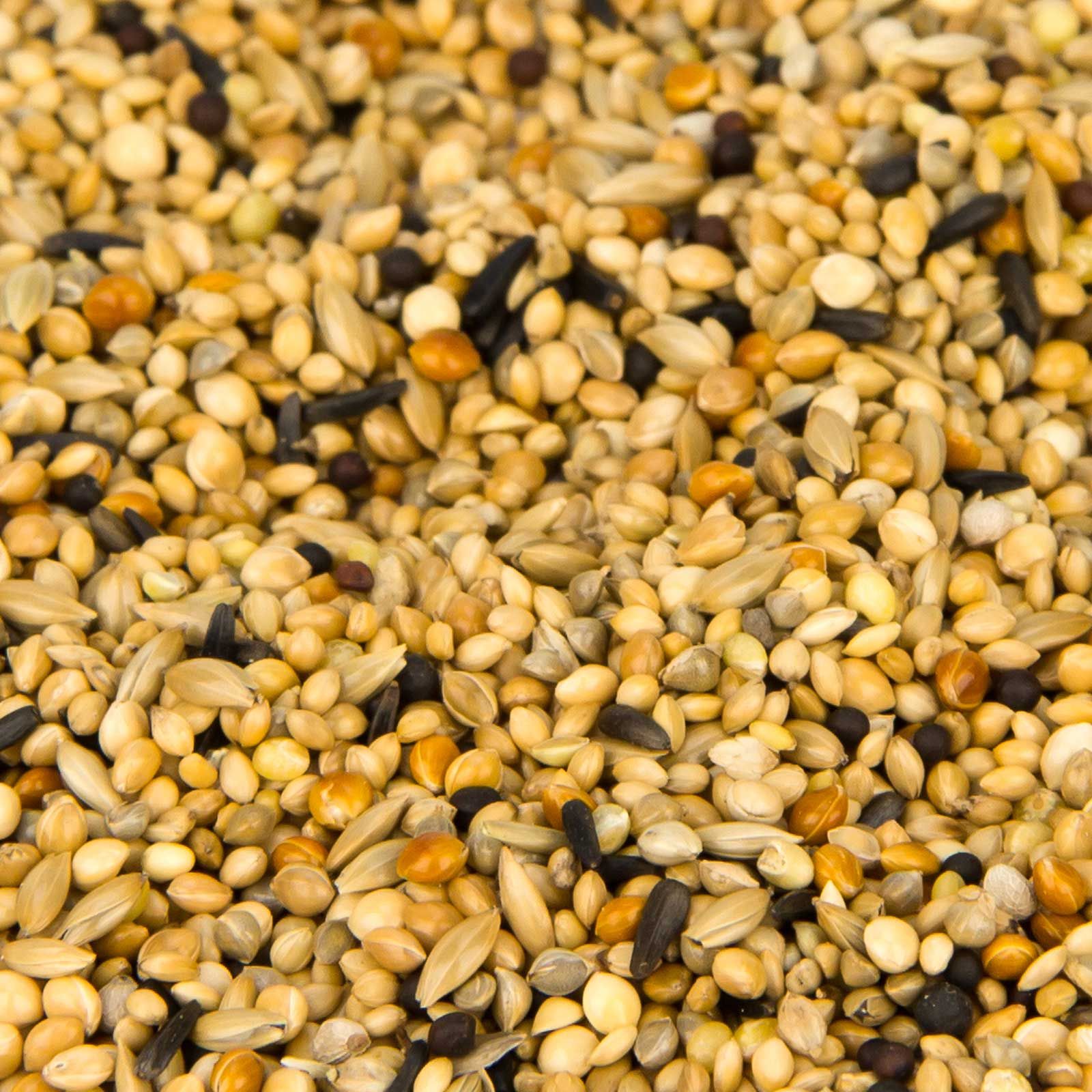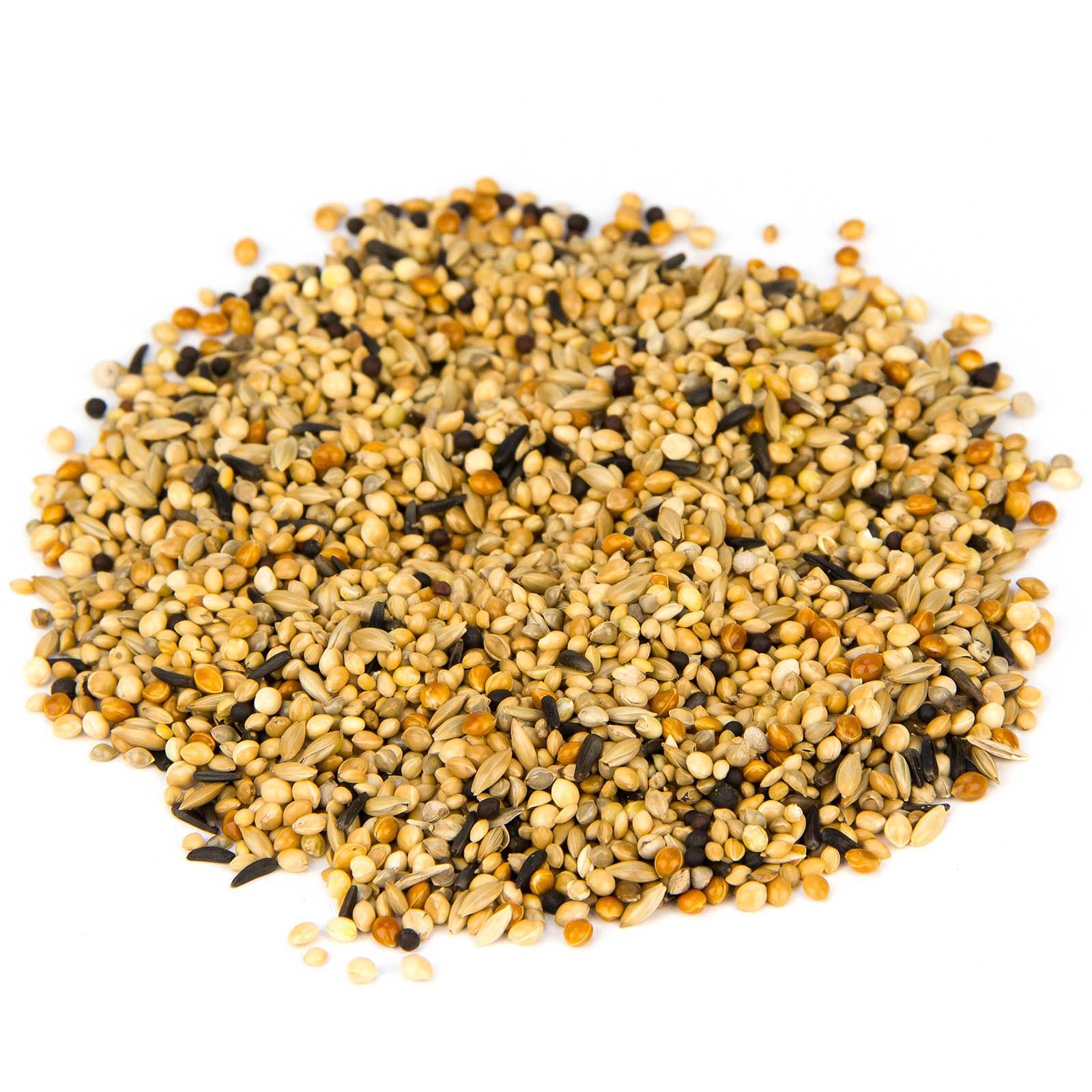 30 % Gelbhirse, 23 % Senegalhirse, 20 % Platahirse, 10 % Glanzsamen, 8 % Rothirse, 2 % Japanhirse, 4 % Rübsen schwarz, 3 % Negersaat